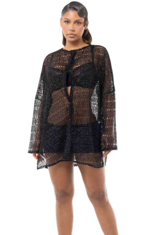 COUCOO BLACK MESH LONG SLEEVE TOP
