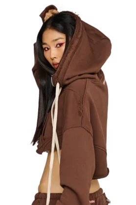 COUCOO CROPPED, ZIP UP HOODIE IN TEDDY