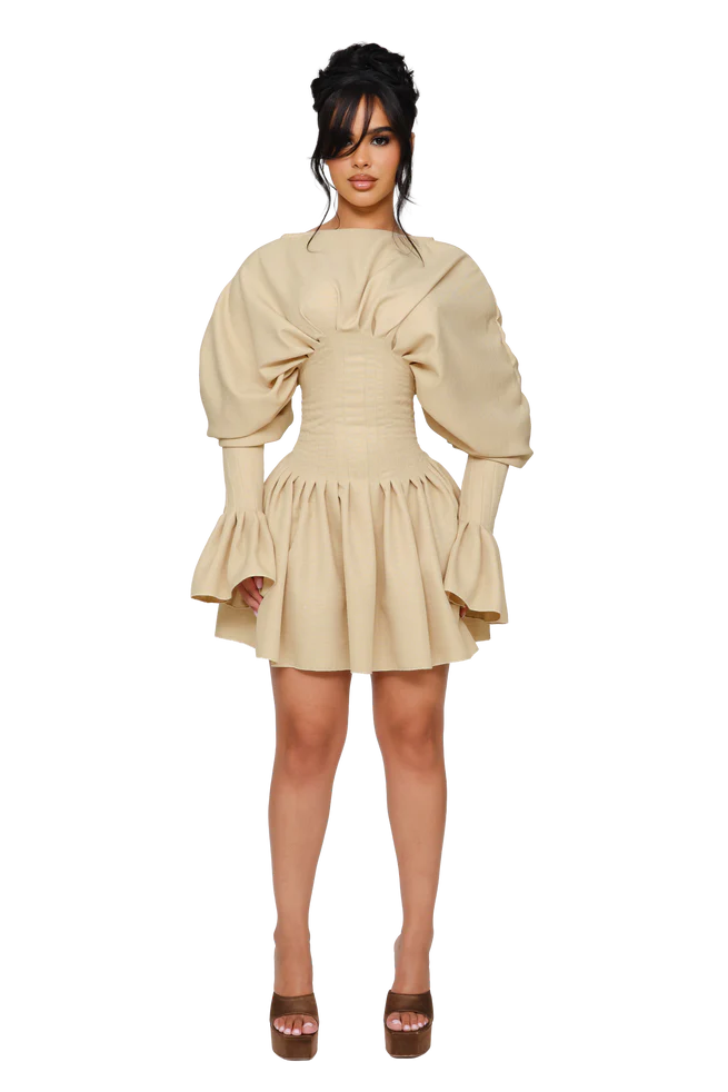 COUCOO DUSK DRAPPED MINI DRESS IN DUSTED SHELL