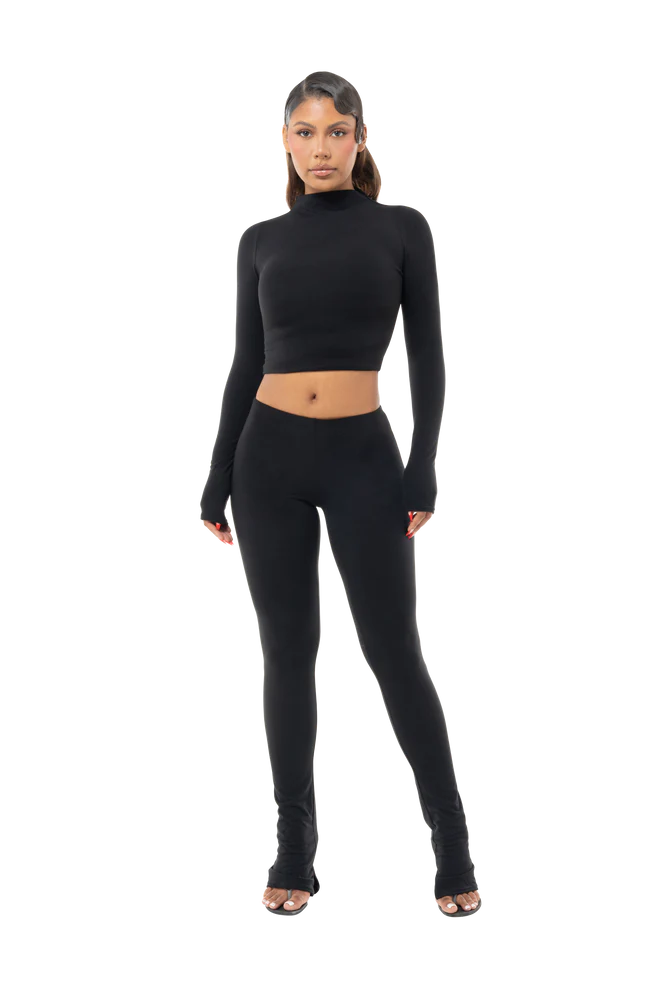 COUCOO NOT SO BASIC LONG SLEEVE MOCK NECK CROP IN BLACK / WHITE