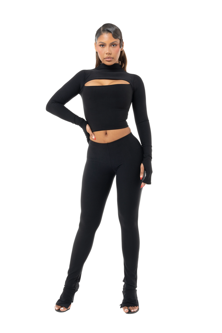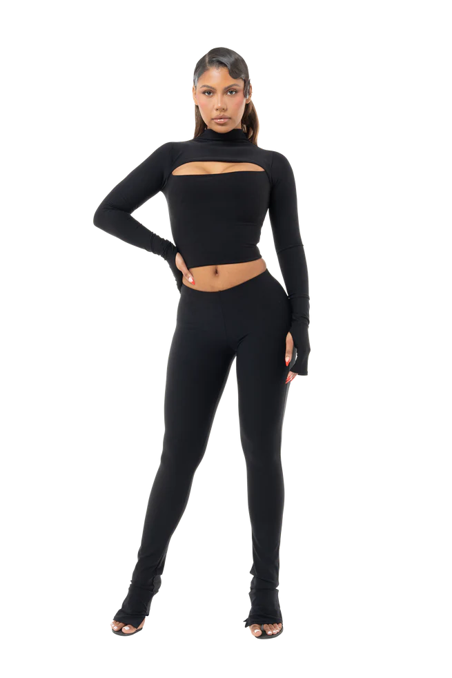 COUCOO NOT SO BASIC LONG SLEEVE PEEKABOO TOP IN BLACK