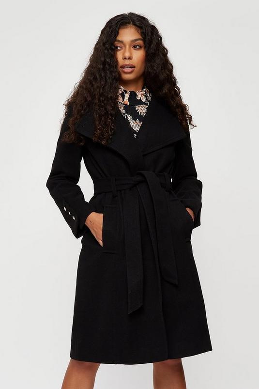 DOROTHY PERKINS PETITE WRAP COAT IN BLACK