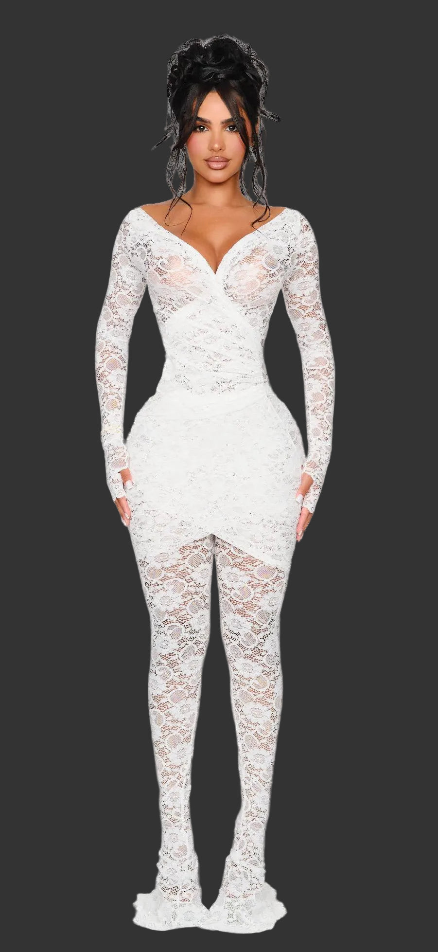 Sheer leggings in Lanai Lace – a delicate stretch lace with soft scalloped edges and subtle shape retention. Designed to pair seamlessly with the matching mini-dress or to be styled on their own. Features a pull-on fit with no closures and a mid-rise elasticated waistband. Finished with scalloped hems to mirror detailing of the dress.
