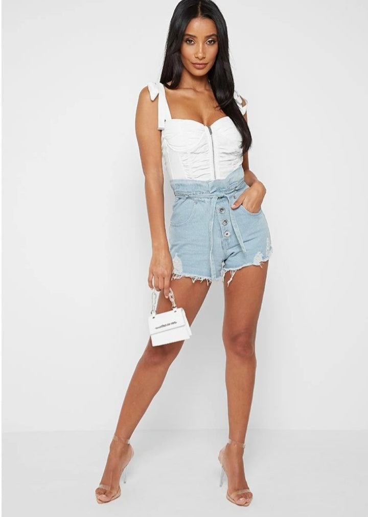 MANIERE DE VOIR 'PAPERBAG DENIM SHORTS WITH DISTRESSING, SIZE 12