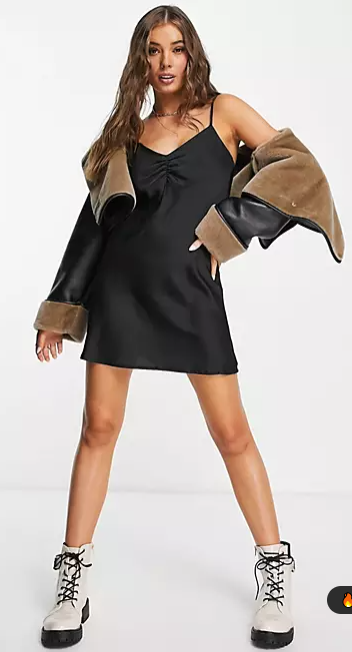 STRADIVARIUS SATIN SLIP MINI DRESS IN BLACK